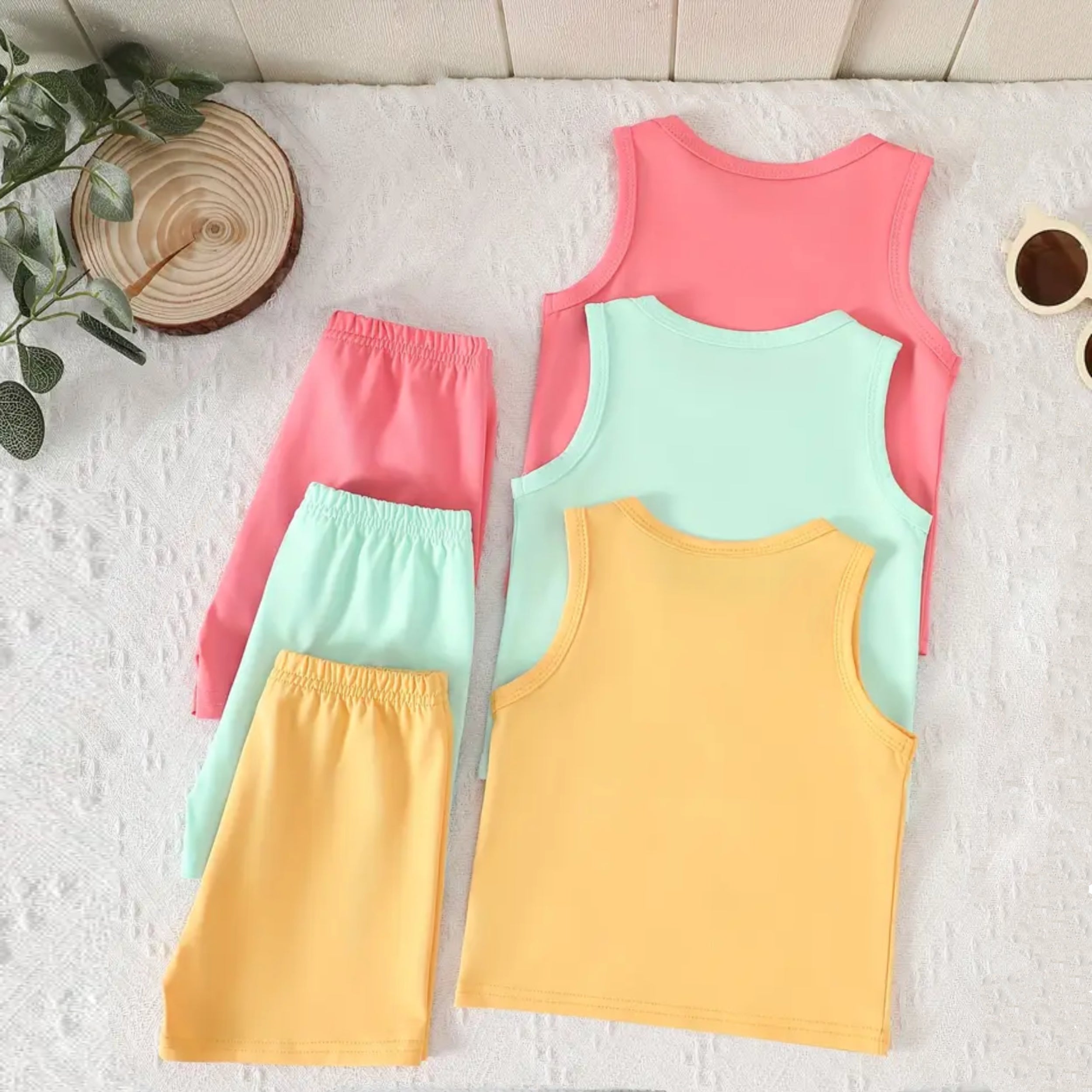 Bundle Of 3 Bright Colors Printed Sando Suit For Kids